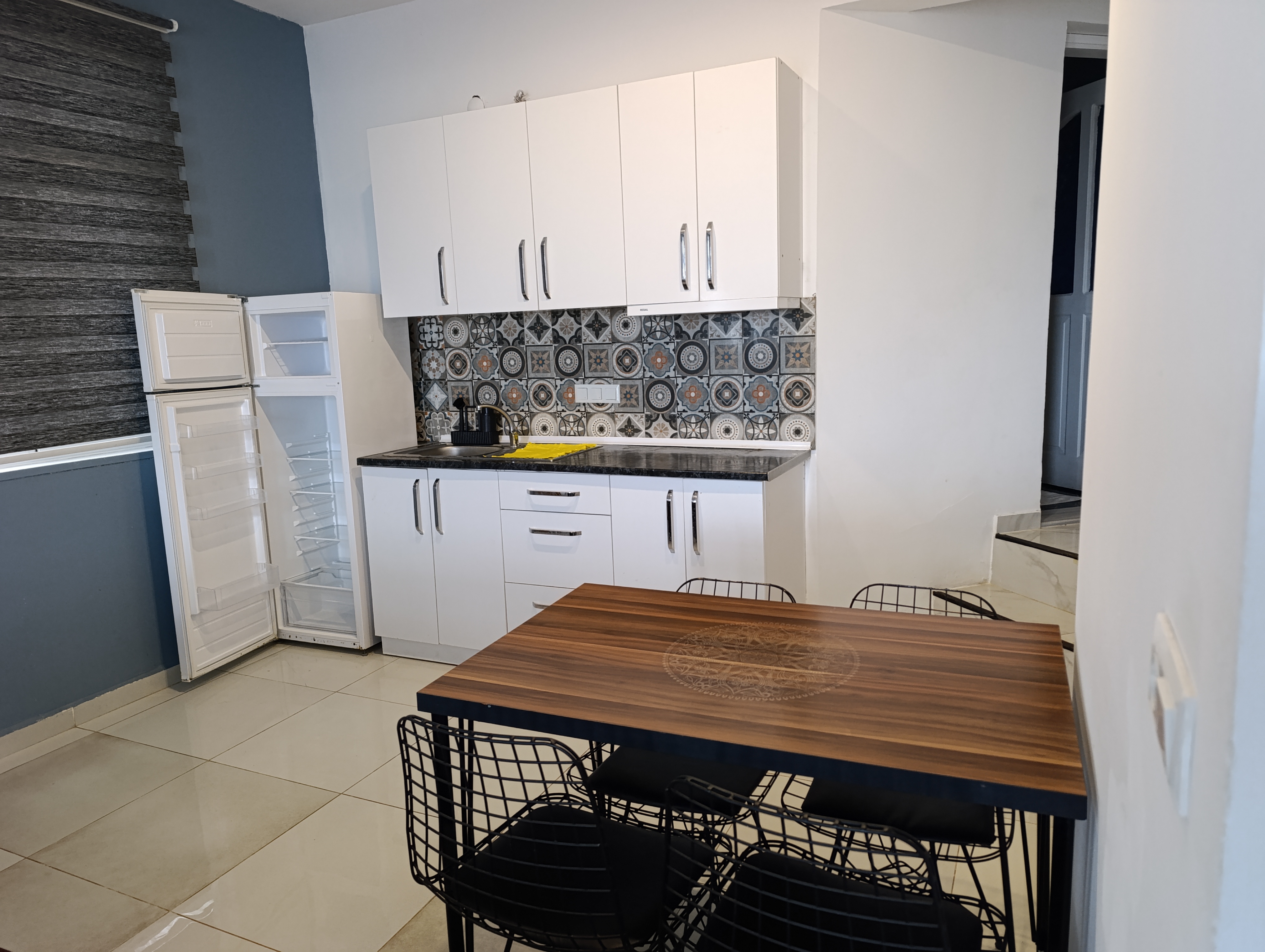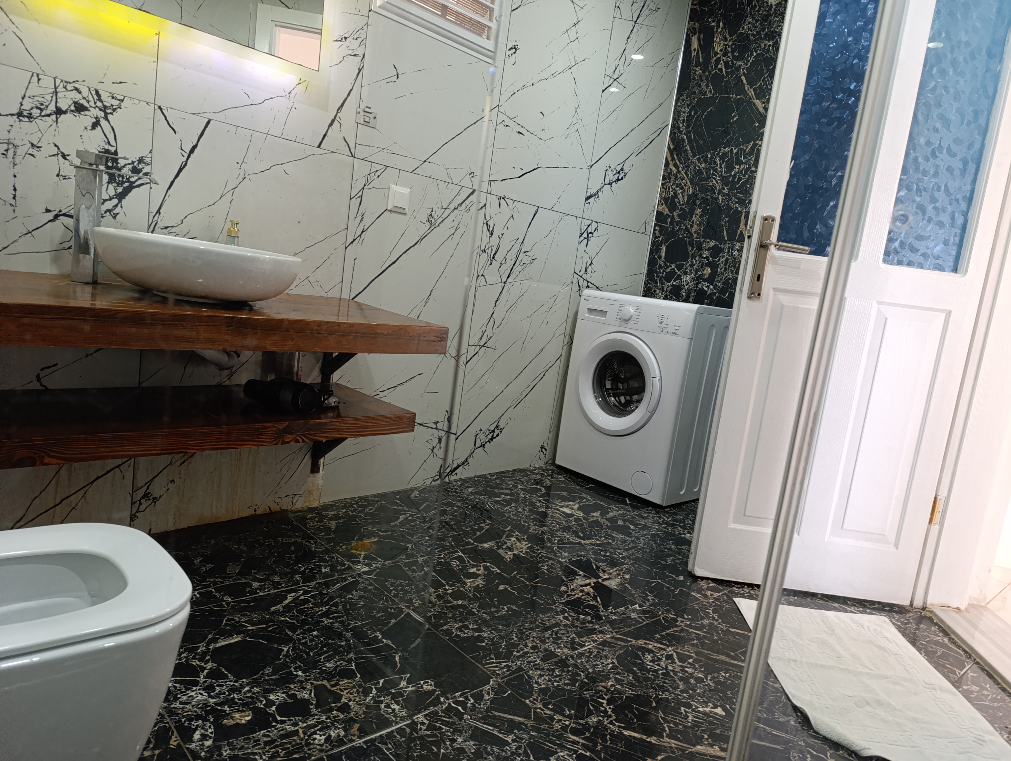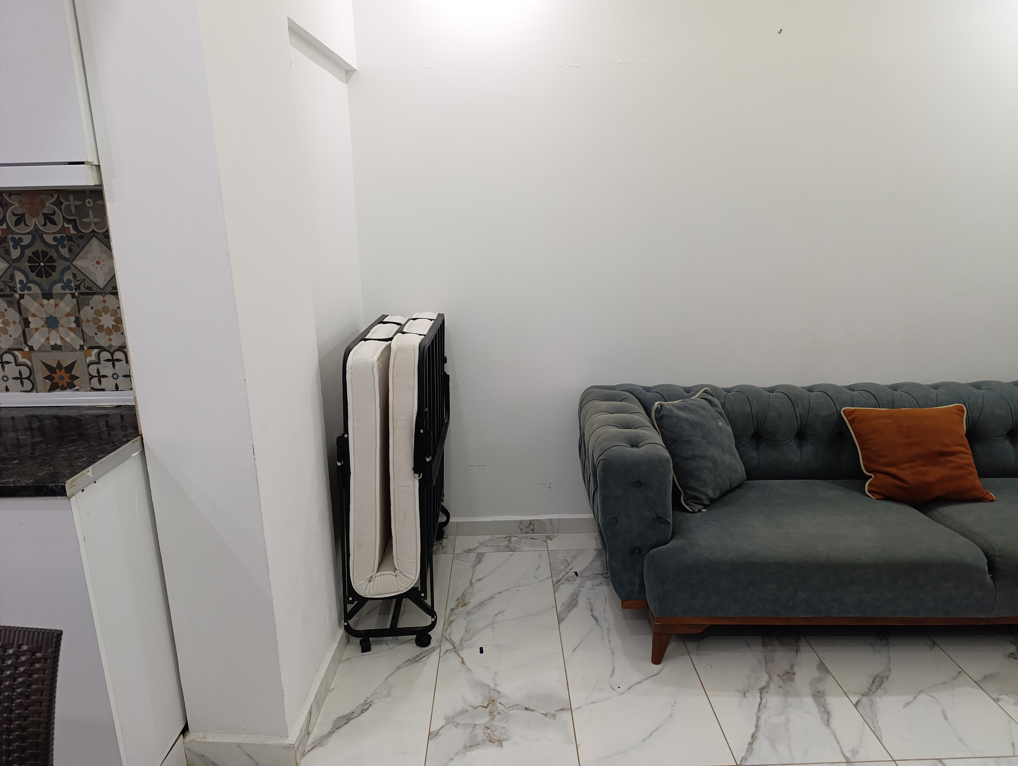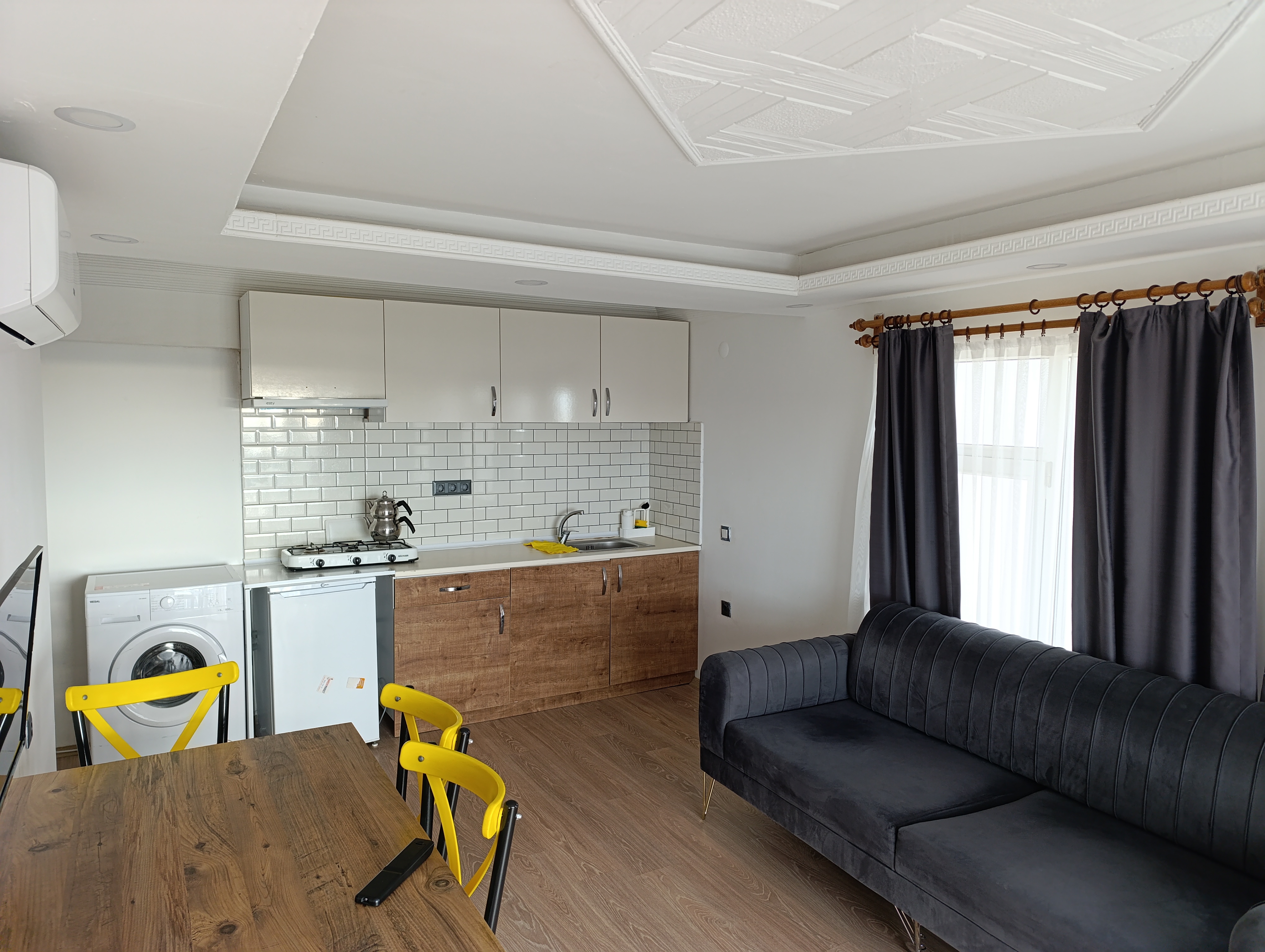 1+1 apart 1 bedroom with queen size bed livingroom has sofa bed and folding bed kitchen full furnished washing mac.