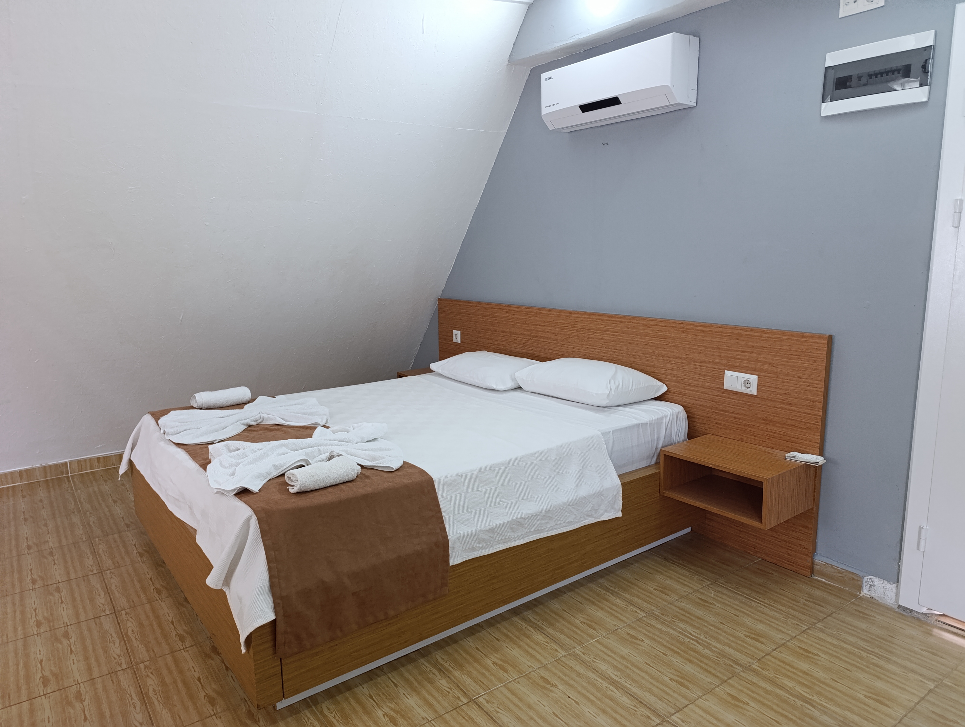 Dairemiz 2+1 daire şeklinde olup birinci yatak odasında 1 adet çift kişilik yatak, ikinci yatak odasında 3 tane adet tek kişilik yatak, salonda oturma grubu, mutfak ve mutfak gereçleri, geniş bir balkon, WC & duşa sahiptir.
